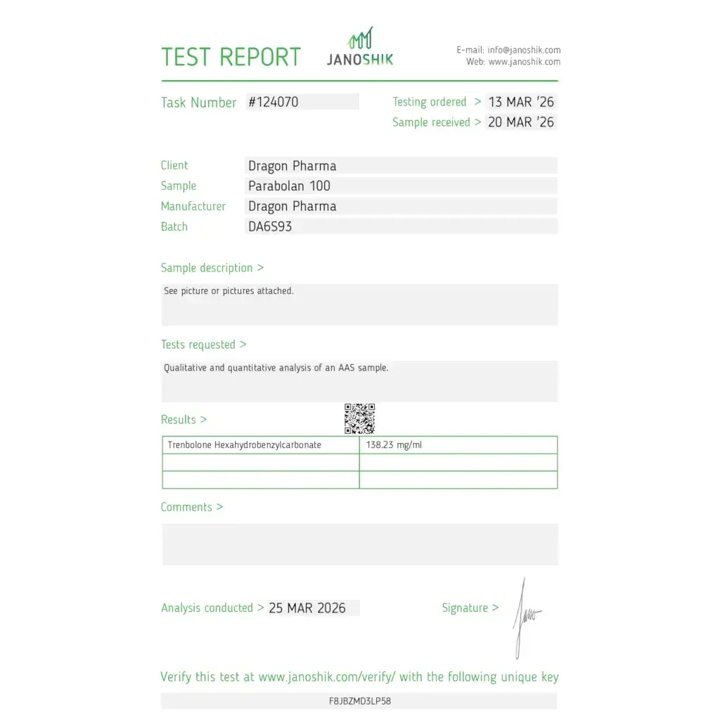 The standard dosage is 50–100 mg per day, injected either daily or every other day depending on cycle goals. Typical cycles last 4–6 weeks, often paired with injectable testosterone such as Cypionat 250 for maximum synergy.
